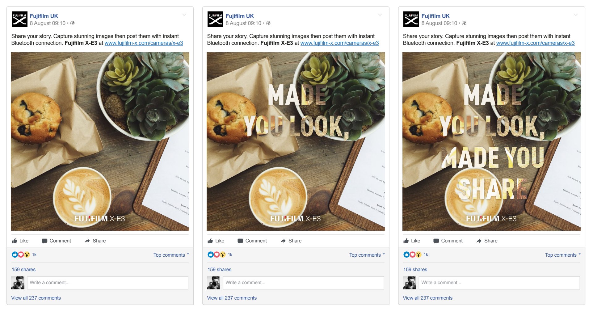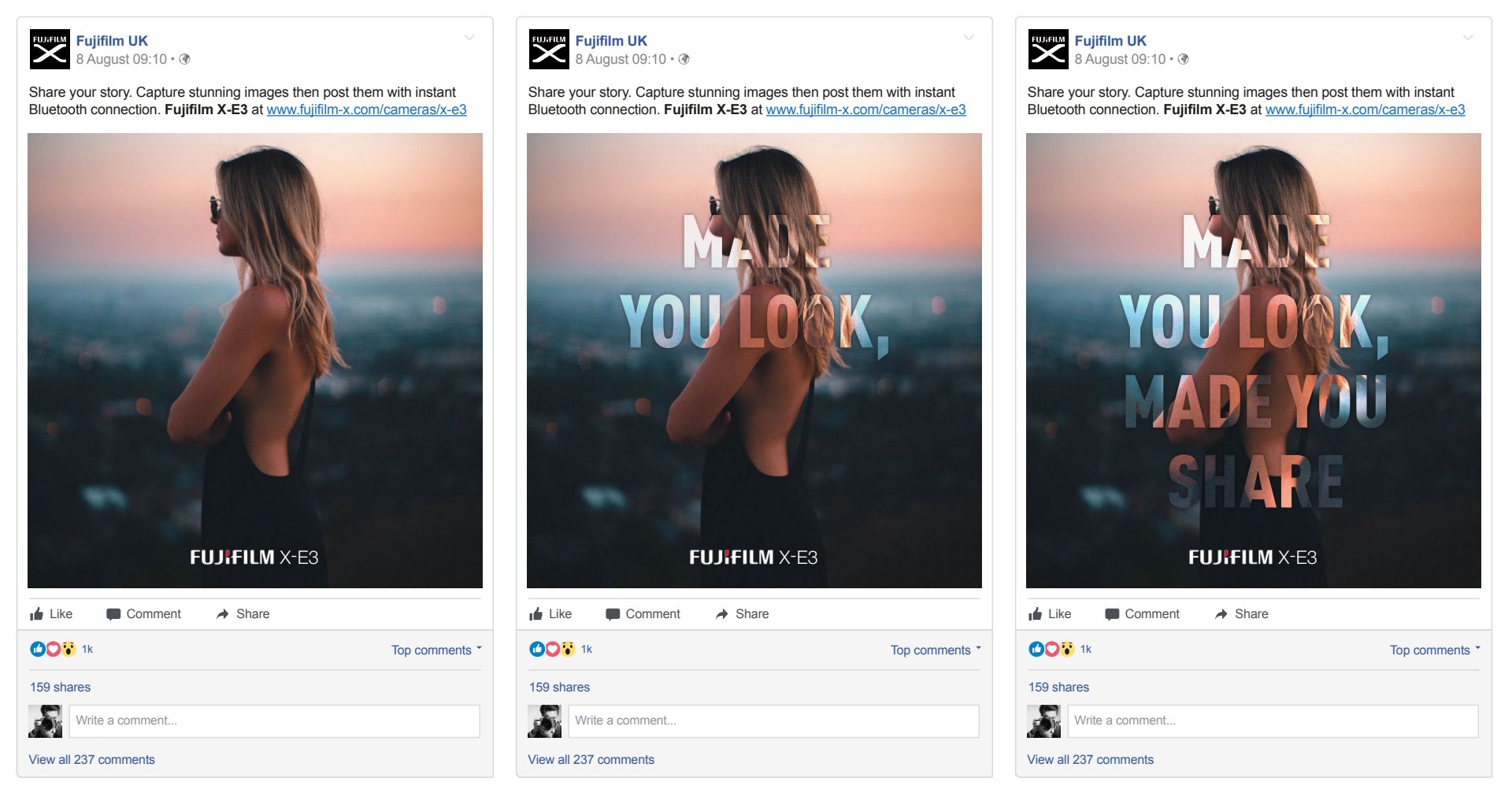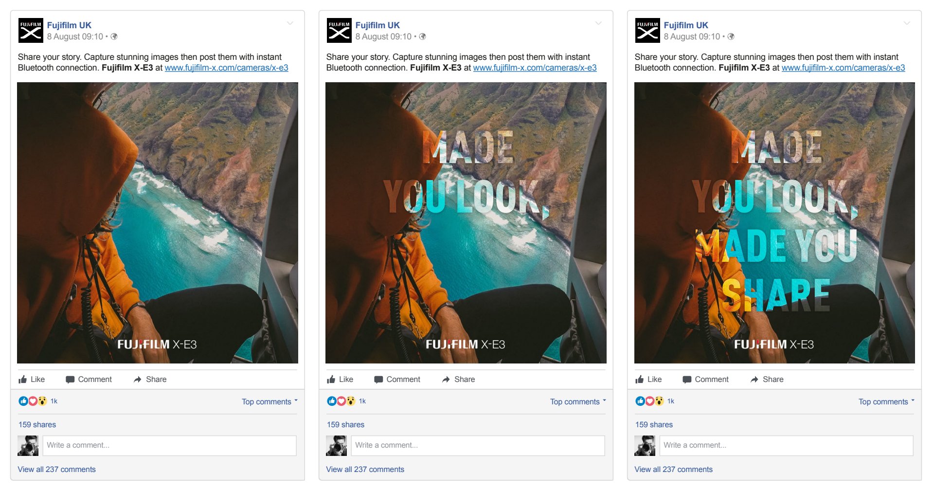 Below this is another social campaign for the X-E3. It’s USP was that you could send images straight to your social posts. For this I wrote one of my favourite ever headlines.
