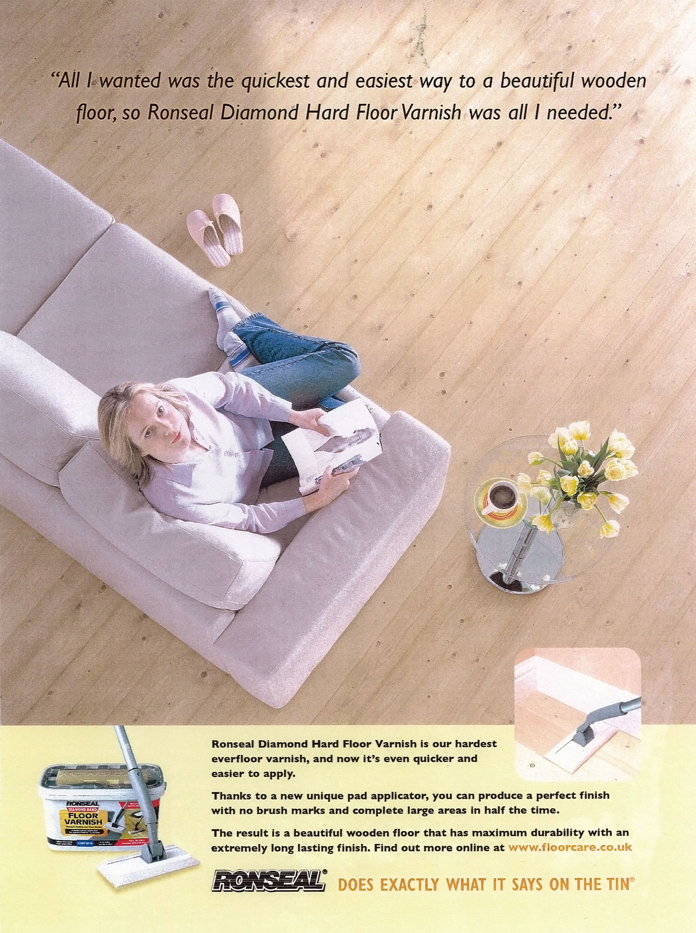 I’ve had the pleasure on working on Ronseal. I actually did their first ads aimed at a female audience. Two of which are below. I also did their first ever radio ads. I love working on radio, so was chuffed when they went with my scripts that deviated from the traditional ‘character’ talking direct to the audience and instead embraced my idea that their Ronseal man was obsessed with Ronseal products. They went on to win a radio award for best campaign. Which is nice.